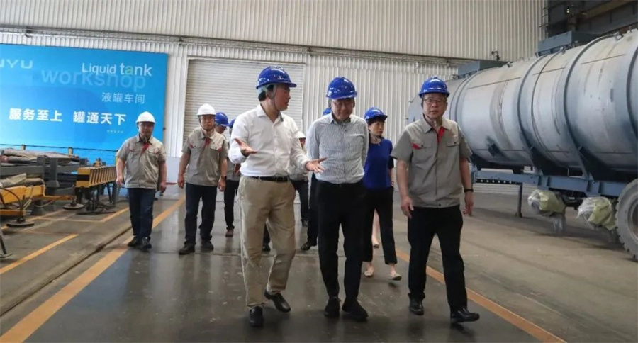 4月20日,中集車輛集團CEO兼總裁李貴平攜高級副總裁王柱江、副總裁兼CTO李曉甫、副總裁兼董事會秘書毛弋、全國統(tǒng)一大市場發(fā)展委員會聯(lián)席主席李志敏、CEO項目發(fā)展助理王佳慧一行蒞臨中集凌宇參觀指導(dǎo)工作。